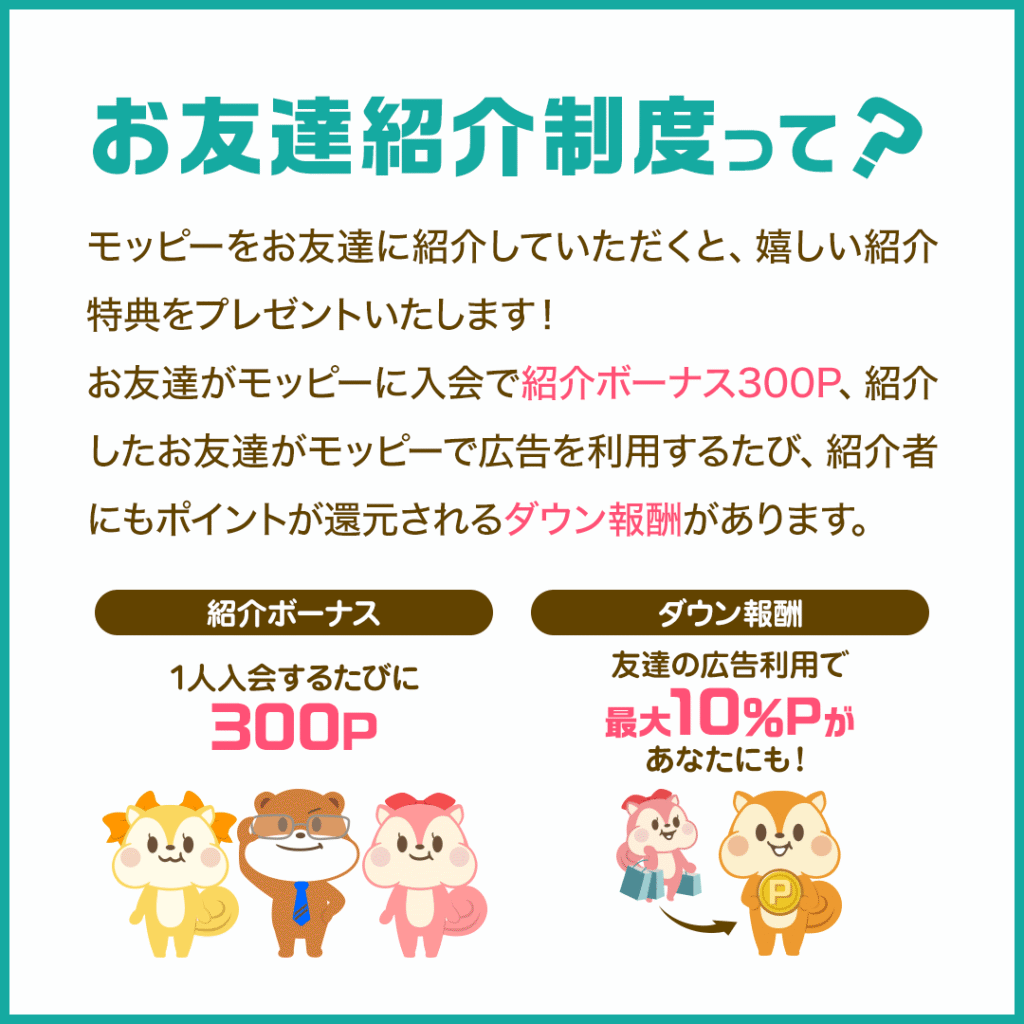 モッピーでは、紹介コードを利用することで特典を得ることができます。